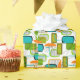 Mid-Century Modern Abstract in orange, lime and teal. Background colour is customisable.
