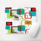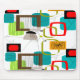 Mid-Century Modern Abstract Design in Teal, red, gold, black and lime green colours. Artist reproduced design based on a swatch of fabric from atomic era.