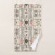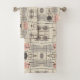 This Mid Century Modern Abstract Fabric Towel Set features a replica of a vintage 1950's fabric. The background is ecru with black and gold lines. The fabric also features grey and pink modern art shapes. It's a blast from the past! This is the perfect design for anyone who loves items with a retro feel.