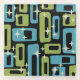 Retro Mid Century Modern Abstract Pattern Black Blue & Green.