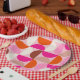 Mid Century Modern Abstract Pattern Pink Orange Paper Plate