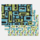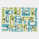Retro Mid Century Modern Abstract Pattern Black Blue & Green.