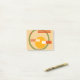 These Post-It notes have a mid-century modern abstract design of a gold circle inside a green circle with orange and white stripes.