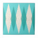 This Mid Century Modern Argyle Small Ceramic Tile features a vibrant, turquoise background and a pattern of mod, translucent teal diamonds overlaying larger, vintage cream diamonds with gold coloured, space age speckles. This minimalist inspired, deconstructed argyle is a simplistic throwback of the larger than life atomic era that dominated the decorating landscape of the 1950s and 1960s. This kitschy design is reminiscent of everything from retro Palm Springs’ bowling alley signs to the television trays you used at your grandma’s house.