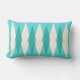 This Mid Century Modern Argyle Lumbar Pillow features a vibrant, turquoise background and a pattern of mod, translucent teal diamonds overlaying larger, vintage cream diamonds with gold coloured, space age speckles. This minimalist inspired, deconstructed argyle is a simplistic throwback of the larger than life atomic era that dominated the decorating landscape of the 1950s and 1960s. This kitschy design is reminiscent of everything from retro Palm Springs’ bowling alley signs to the television trays you used at your grandma’s house.