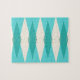 This Mid Century Modern Argyle Puzzle (large print) features a vibrant, turquoise background and a pattern of mod, translucent teal diamonds overlaying larger, vintage cream diamonds with gold coloured, space age speckles. This minimalist inspired, deconstructed argyle is a simplistic throwback of the larger than life atomic era that dominated the decorating landscape of the 1950s and 1960s. This kitschy design is reminiscent of everything from retro Palm Springs’ bowling alley signs to the television trays you used at your grandma’s house.