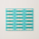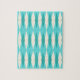 This Mid Century Modern Argyle Puzzle (small print) features a vibrant, turquoise background and a pattern of mod, translucent teal diamonds overlaying larger, vintage cream diamonds with gold coloured, space age speckles. This minimalist inspired, deconstructed argyle is a simplistic throwback of the larger than life atomic era that dominated the decorating landscape of the 1950s and 1960s. This kitschy design is reminiscent of everything from retro Palm Springs’ bowling alley signs to the television trays you used at your grandma’s house.