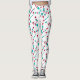 These leggings have a mid-century modern design of arrows made from lines with different turquoise and beet-coloured shapes attached, on a field of white. Want the same design with different colours? Message me.