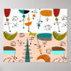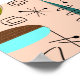 Mid-Century Modern Art Poster half moons design in colours of red, orange and yellow, teal brown and black. . Colours relevant to the time period. Design is perfect for any mid-century modern home.