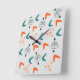 This wall clock has a mid-century atomic modern design of boomerang shapes, antennae, and starbursts in teal, orange.