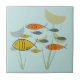 Mid Century Modern Atomic Era Fish Swimming Blue Ceramic Tile