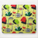 This Mid Century Modern Atomic Fish Mousepad features a replica of a vintage 1950's fabric. The background is pale yellow with mobiles in vibrant shades of red, dark green, lime green, black and white. The modern art shapes include everything from the abstract to the fish! There are small red and black fish swimming to the left, while blowing teal bubbles. There are larger black and white fish swimming to the right, while blowing grey bubbles. And there are grey jellyfish, who don't seem to be doing much of anything. This is the perfect design for anyone who loves fish, fabric, and items with a retro feel. It's a blast from the past!