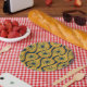 Mid Century Modern Atomic Pattern Mustard Navy Paper Plate