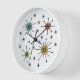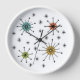 A vibrant cluster of atomic‑era starbursts radiates with mid‑century charm, each burst anchored by a bold colored center in turquoise, orange, green, and mustard. The crisp black lines and dotted tips create a rhythmic, symmetrical pattern that feels both nostalgic and stylishly modern. This design captures the playful optimism of the 1950s while remaining clean, graphic, and timeless. Perfect for retro‑inspired interiors, geometric art lovers, and anyone drawn to the iconic visual language of the atomic age.