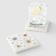 The coasters are gorgeous, a quality feel and heavy weight. They look like a precious archeological find. A rustic stone juxtaposed with a modern floral black and white print. I like the way the print goes slightly imperfect on the cut stone edges giving them a kind-of natural beauty.