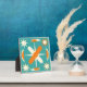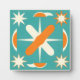Capture the iconic retro charm of the atomic era with this vibrant mid-century modern starburst design. Bold orange organic shapes intersect with creamy white rays and accents against a rich teal background, surrounded by playful starbursts in orange and off-white. The clean lines and cosmic-inspired elements evoke optimism and energy, bringing timeless 1950s-1960s style.