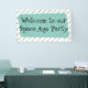 A 1960s space age theme with atomic stars, starburts and shapes. Colours include black, blue, pink, teal and yellow on a white background. Perfect for your next midcentury modern themed party.
