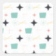 A 1960s space age theme with atomic stars, starburts and shapes. Colours include black, blue, pink, teal and yellow on a white background. Perfect for your next midcentury modern themed party.