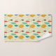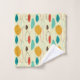 Mid-Century modern bathroom towel. Circular pattern. Colours in red, yellow and turquoise.