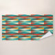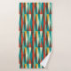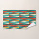 Mid-Century modern bathroom towel. Diamond pattern. Colours in red, turquoise, yellow and brown.