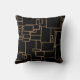 Mid-century modern inspired throw pillow features a simple minimalistic abstract rectangular lattice design in black with gold accents.