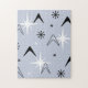 Mid Century Modern Boomerangs Silver Blue Jigsaw Puzzle