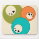 This mouse pad has a mid-century modern design of three circles, orange, green, and turquoise, with white circles inside with three stars in each. If you like the design but prefer different colours, message me.