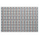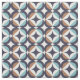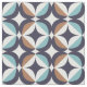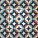 This mid-century modern pattern features blue and brown shapes.