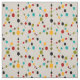 Mid-Century Modern bubbles and sticks in multiple colours relevant to the mid-century time period. Fabric on a light beige/brown background.