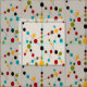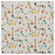 Mid-Century Modern bubbles and sticks in multiple colors relevant to the mid-century time period. Fabric on a light beige/brown background.