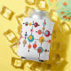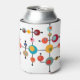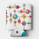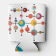 This can cooler has a mid-century modern design of bubbles connected on black lines.