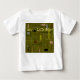 This baby t-shirt has a mid-century modern design of rectangles in green, gray, brown, and black.