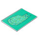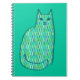 Notebook with a Mid-Century Modern, retro cat design, in an abstract ribbon pattern - mint, lime green, aqua and turquoise, outlined in dark teal, on a medium mint green / peacock green background