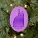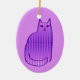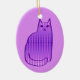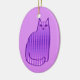 Ceramic ornament in a Mid-Century Modern, retro cat design, in a silky, gradient pattern of light orchid to deep violet dots, outlined in deep violet purple, on an orchid background