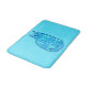 Bathmat in a Mid-Century Modern, retro cat design, in a geometric spiral pattern - turquoise, aqua and cobalt blue, outlined in deep navy, on an aqua background
