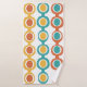 This towel set has a gold washcloth, a turquoise hand towel, and a bath towel with a mid-century modern design of circles connected together making a chain with white and coloured circles inside. Want different colours? Message me.