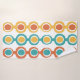 This towel set has a turquoise washcloth, an orange hand towel, and a bath towel with a mid-century modern design of circles connected together making a chain with white and coloured circles inside. Want different colours? Message me.