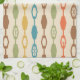 A 1950s style abstract art with geometric shapes of vertical chains and hexagons.The perfect gift idea for anyone who loves 20th century retro kitsch art. Bright vintage colours of brown, yellow, green, orange and blue.