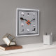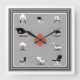 Iconic Eames Chairs in Grey, Black and White with Orange Accents. Square Mid-Century Modern retro vintage wall clock. Enjoy!