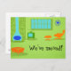 This customisable Mid Century Modern Retro Change of Address Postcard will have you breaking out your strands of pearls to do the most mundane tasks. The front design features a lime green background with the silhouette of a blue, cone fireplace, a green, classic tube television set (complete with rabbit ears), an orange lounge chair and footstool, a blue, starburst clock, and an orange ottoman with tapered legs. Simply click on the "Customise It" icon to replace the existing text with your own. It's a cinch for a modern computer savvy person such as yourself! Home Sweet Home just got a whole lot sweeter!