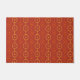 This doormat has a mid-century modern design of circles strung together in retro shades of orange, gold, and brown.