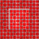 Mid-Century Modern design based on the classic interlocking circles pattern - mixed media graphic in shades of light grey on a deep red background