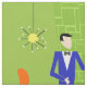 This Mid Century Modern Couple Fabric looks like a scene out of a romantic comedy. The 1960's style, minimalist art design features an attractive cartoon couple enjoying a romantic evening at home. The sophisticated room prominently features a green stone wall with a roaring fire in the fireplace. The furnishings in the room include an orange, lounge chair with matching footstool, a red, starburst wall clock, a yellow, sputnik light fixture, and an orange side table, which is home to a green, portable record player. On the floor beside the end table, a vinyl record can be seen poking out of a kitschy album cover. In the centre of the green flooring, there is a large, rectangular, teal rug. In the middle of the scene, we have a very sophisticated couple. There is a suave man in a royal blue suit, white shirt and blue bow tie. The tall, dark and handsome man is gazing at his lovely companion. The elegant, raven haired woman is wearing a flouncy aqua dress. They are each holding a crystal martini glass with a floating olive. Cheers! Here's to the perfect evening at home!