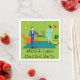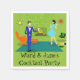 These Customisable Mid Century Modern Couple Paper Napkins look like a scene out of a romantic comedy. The 1960's style, minimalist art design features an attractive cartoon couple enjoying a romantic evening at home. The sophisticated room prominently features a green stone wall with a roaring fire in the fireplace. The furnishings in the room include an orange, lounge chair with matching footstool, a red, starburst wall clock, a yellow, sputnik light fixture, and an orange side table, which is home to a green, portable record player. On the floor beside the end table, a vinyl record can be seen poking out of a kitschy album cover. In the centre of the green flooring, there is a large, rectangular, teal rug. In the middle of the scene, we have a very sophisticated couple. There is a suave man in a royal blue suit, white shirt and blue bow tie. The tall, dark and handsome man is gazing at his lovely companion. The elegant, raven haired woman is wearing a flouncy aqua dress. They are each holding a crystal martini glass with a floating olive. Cheers! Here's to the perfect evening at home! Personalise for your special occasion.