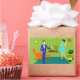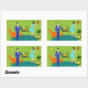 These Mid Century Modern Couple Stickers look like a scene out of a romantic comedy. The 1960's style, minimalist art design features an attractive cartoon couple enjoying a romantic evening at home. The sophisticated room prominently features a green stone wall with a roaring fire in the fireplace. The furnishings in the room include an orange, lounge chair with matching footstool, a red, starburst wall clock, a yellow, sputnik light fixture, and an orange side table, which is home to a green, portable record player. On the floor beside the end table, a vinyl record can be seen poking out of a kitschy album cover. In the centre of the green flooring, there is a large, rectangular, teal rug. In the middle of the scene, we have a very sophisticated couple. There is a suave man in a royal blue suit, white shirt and blue bow tie. The tall, dark and handsome man is gazing at his lovely companion. The elegant, raven haired woman is wearing a flouncy aqua dress. They are each holding a crystal martini glass with a floating olive. Cheers! Here's to the perfect evening at home!