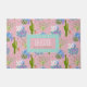 This door mat has a mid-century modern desert landscape pattern with classic Sonora desert cactus, modernism landscaping block wall patters and hints of bold colours in geo shapes. You have ocotillos, agave, prickly pear, saguaro and golden barrel cactus in the pattern. The background is a classic 50s mid-century or Palm Springs pink. You can change this background colour to any colour you want in customisation, also make the pattern smaller or larger. Personalise this with your own greeting.