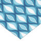 Table runner in a Mid-Century Modern diamond pattern of nested marquise shapes - medium denim blue and light sky blue, with white, and dark navy / indigo accents