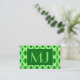 Business card with a Mid-Century Modern diamond grid of nested marquise shapes - shades of deep emerald and light lime green