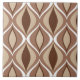 Ceramic tile in a Mid-Century Modern diamond pattern of nested marquise shapes - light and medium taupe tan, with dark chocolate brown, and white accents