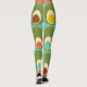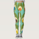 These leggings have a mid-century modern design of green ovals with ovals and circles in them making them look like eggs in retro colours of red, yellow, blue, green, brown, and orange on a field of light blue.